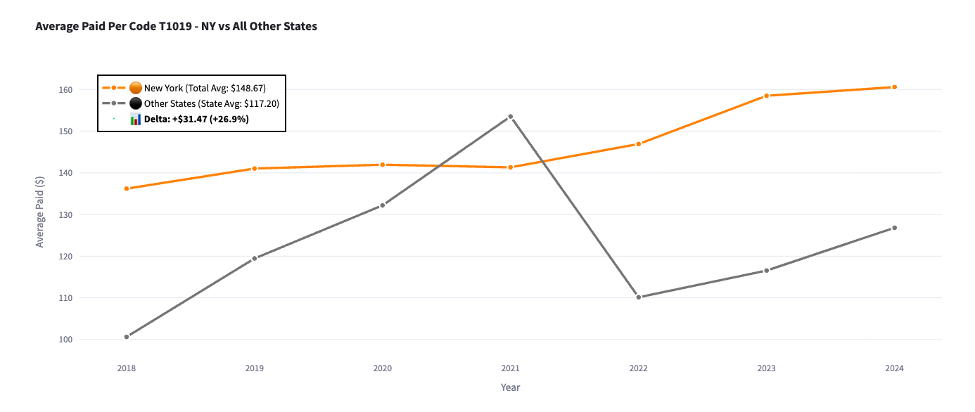 Average Paid Per Code T1019 - NY vs All Other States